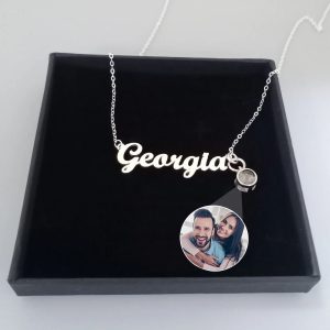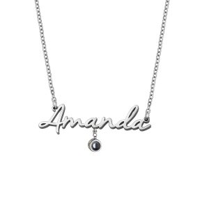 Custom Photo Projection Name with Zircon Gem Necklace