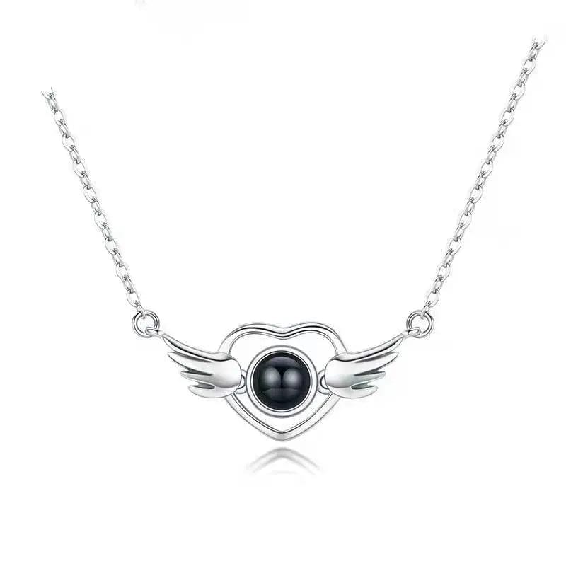 Introducing our exquisite Custom Heart Wing Zircon Gem Hidden Photo Necklace. a one-of-a-kind keepsake that beautifully combines elegance and sentimentality.