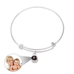 Introducing our exquisite Custom Hidden Photo Projection Adjustable Bangle Round Zircon Bracelet. a harmonious blend of sophistication and sentimentality.