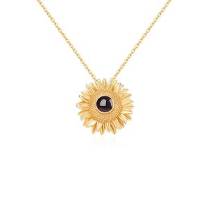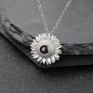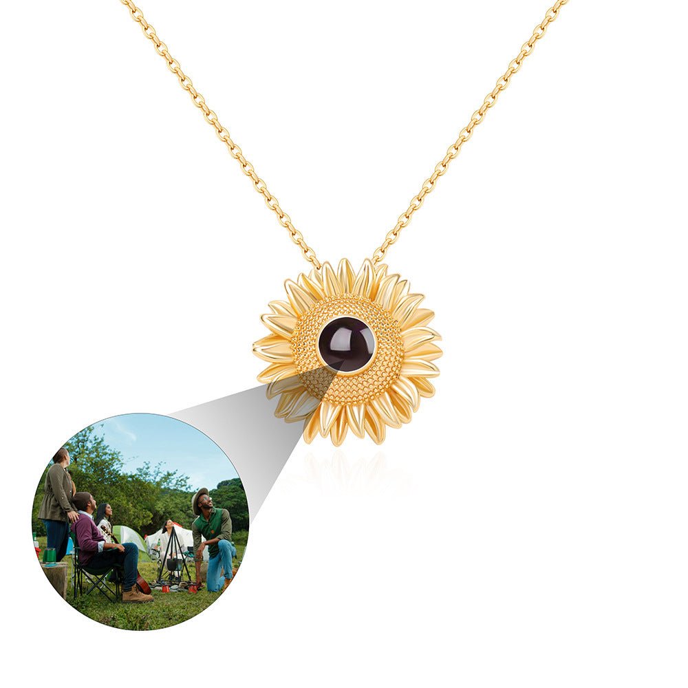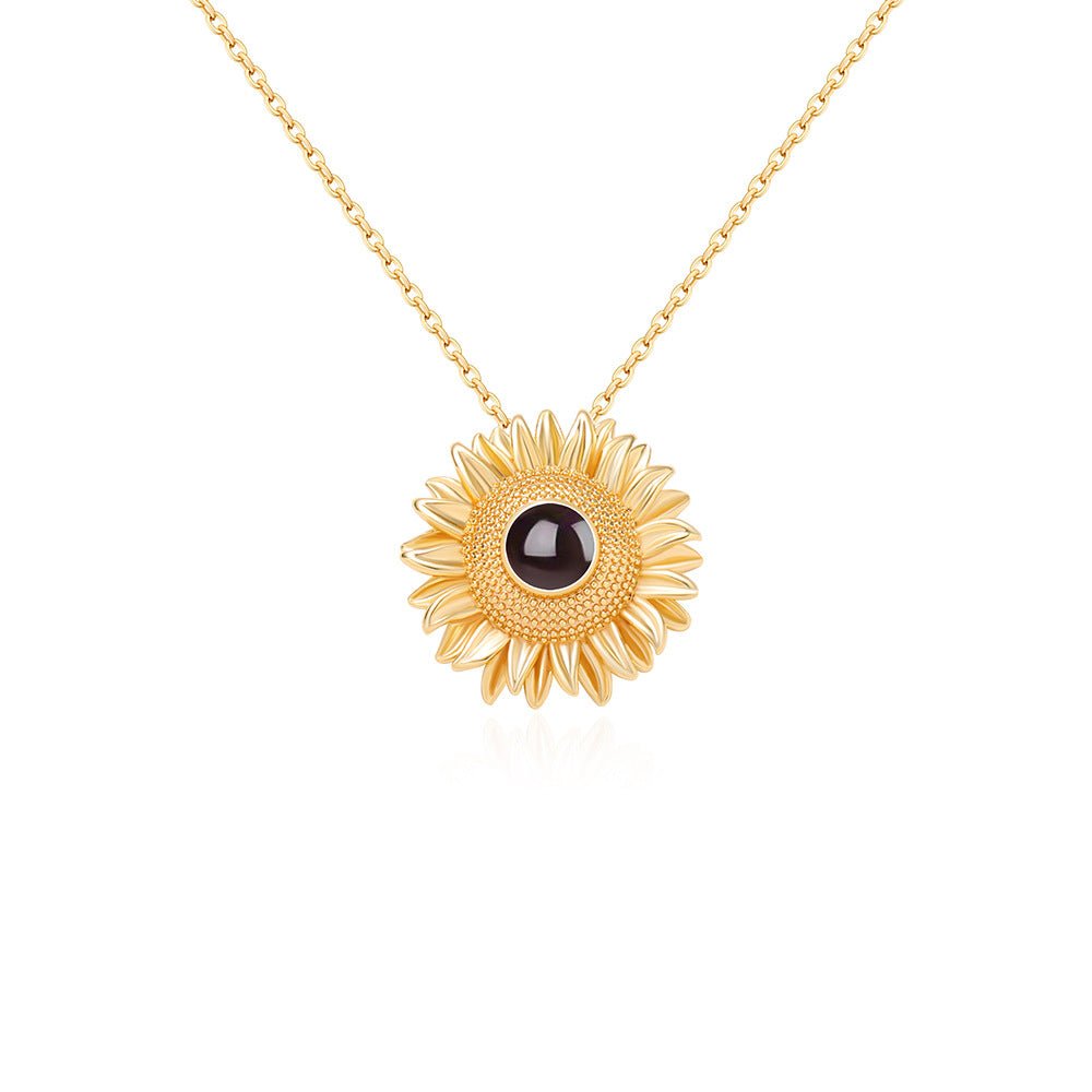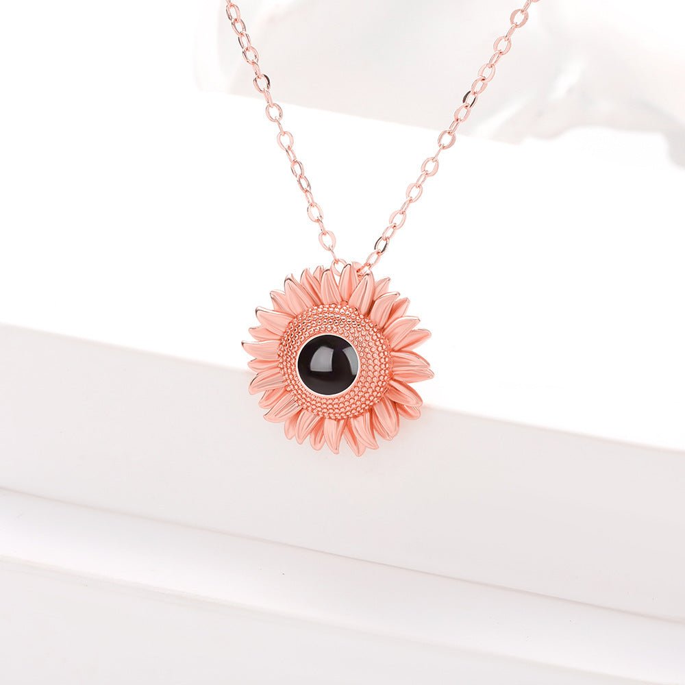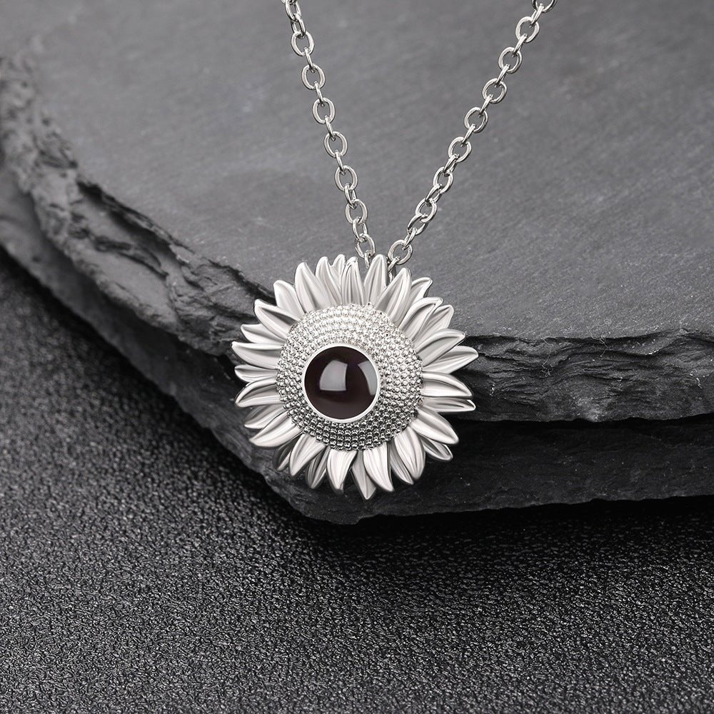 Introducing our radiant Custom Hidden Photo Projection Bloom Sunflower Necklace. a symbol of warmth and cherished memories blooming to life.