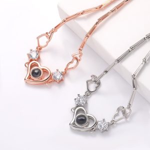 Introducing our exquisite Custom Hidden Photo Projection Diamond Heart Necklace. a symbol of love and cherished memories.