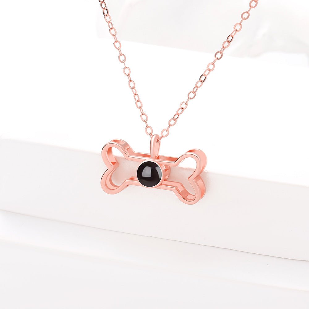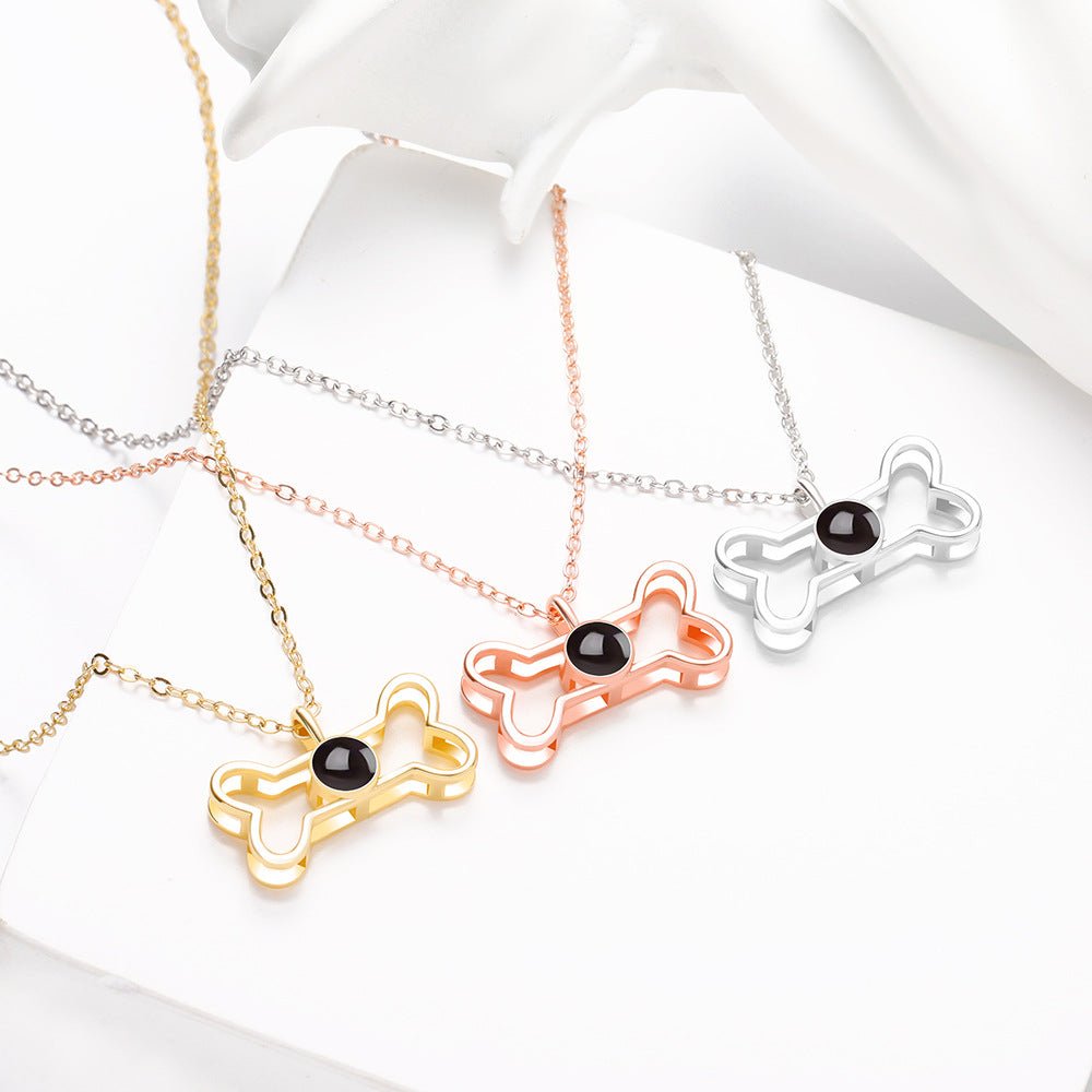 Introducing our adorable Custom Hidden Photo Projection Dog Bone Necklace. a delightful blend of playful charm and heartfelt memories.