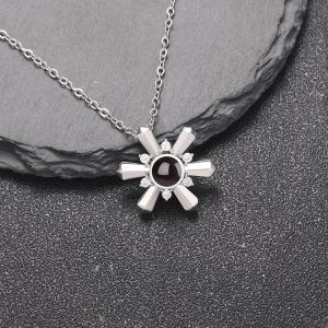At the heart of the pendant lies a black zircon gem. concealing a hidden. customizable photo. This unique feature reveals your cherished memory through light or projection. creating a perfect blend of personalization and sophistication.