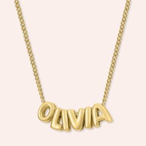 Celebrate your special bond with our Custom Name in 3D Bubble Letters Necklace. This trendy and fashionable piece allows you to wear someone’s name in a unique and eye-catching way. making it a perfect accessory to express your love and remembrance. The 3D bubble letters add a playful and modern twist. making this necklace a must-have for anyone looking to stay on top of the latest jewelry trends.