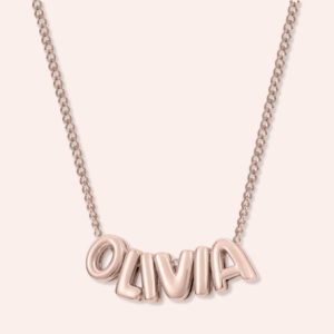 “Our Custom Name in 3D Bubble Letters Necklace is more than just a piece of jewelry; it’s a heartfelt expression of your connection to someone special. Whether it’s the name of a loved one. a best friend. or even your own. this necklace keeps that special person close to your heart. The 3D bubble letters create a cute and distinctive look. ensuring your personalized piece stands out wherever you go.”