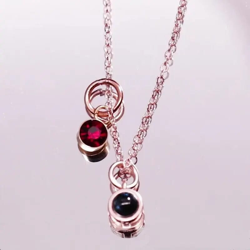 Custom Photo Projection Necklace with Birth Stone Pendant